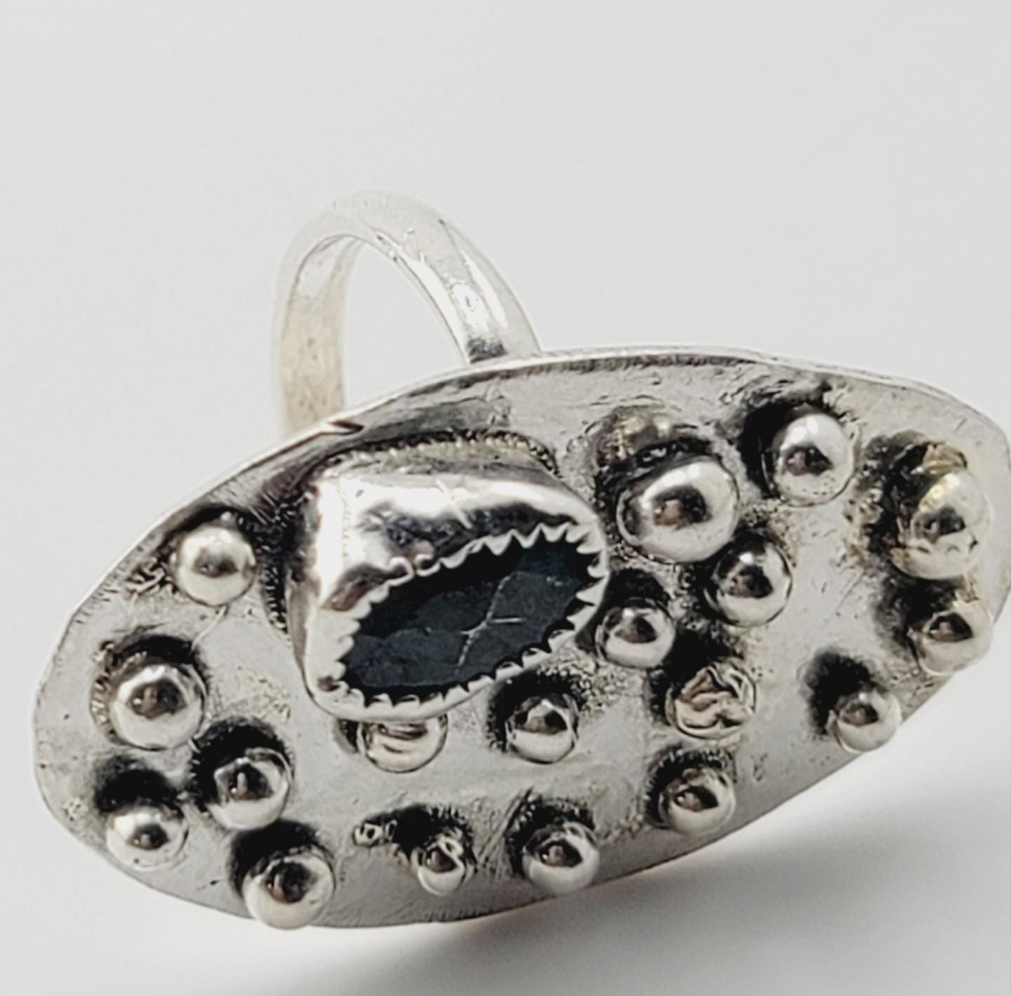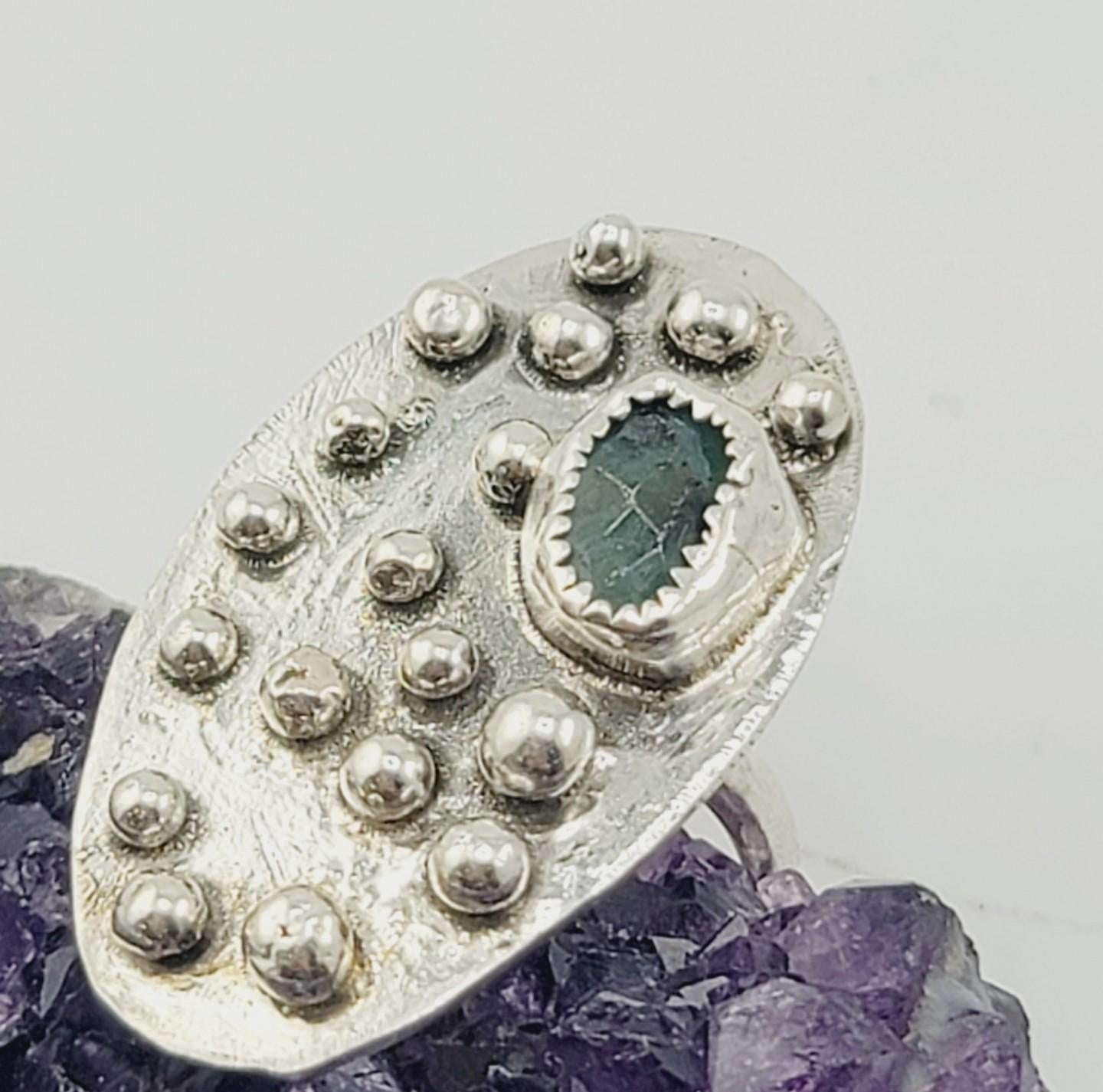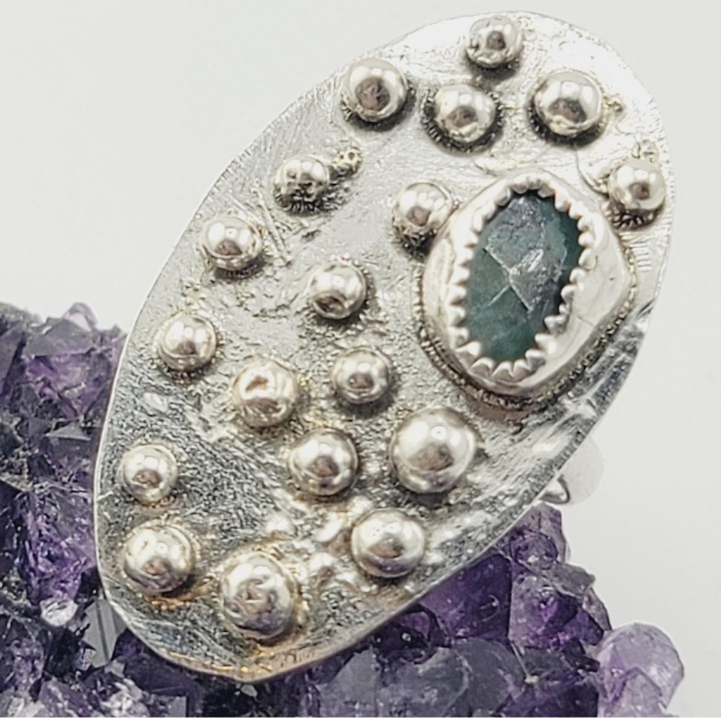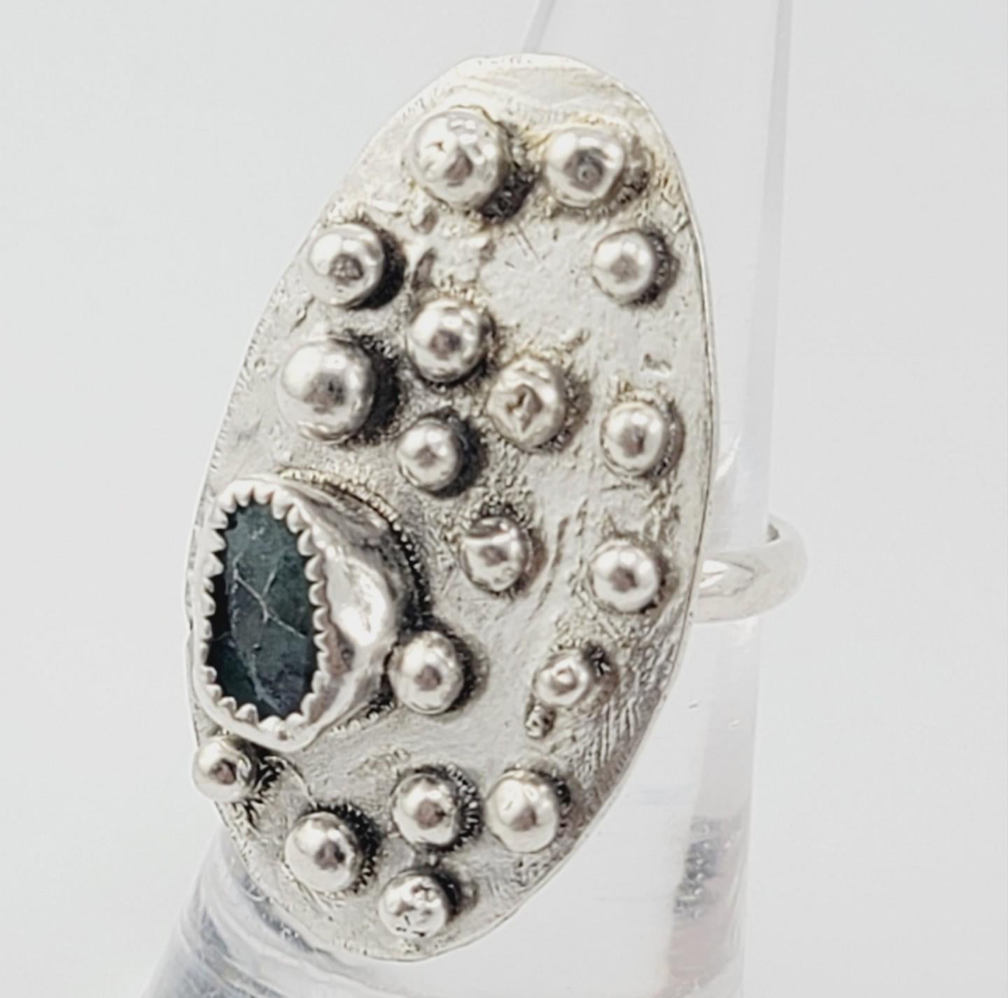 EMERALD STONE ROSECUT STYLE OVAL SHAPE HANDMADE IN STERLING SILVER RECYCLED METAL WOMEZ SIZE 8.5