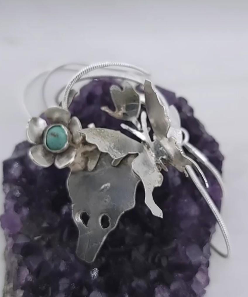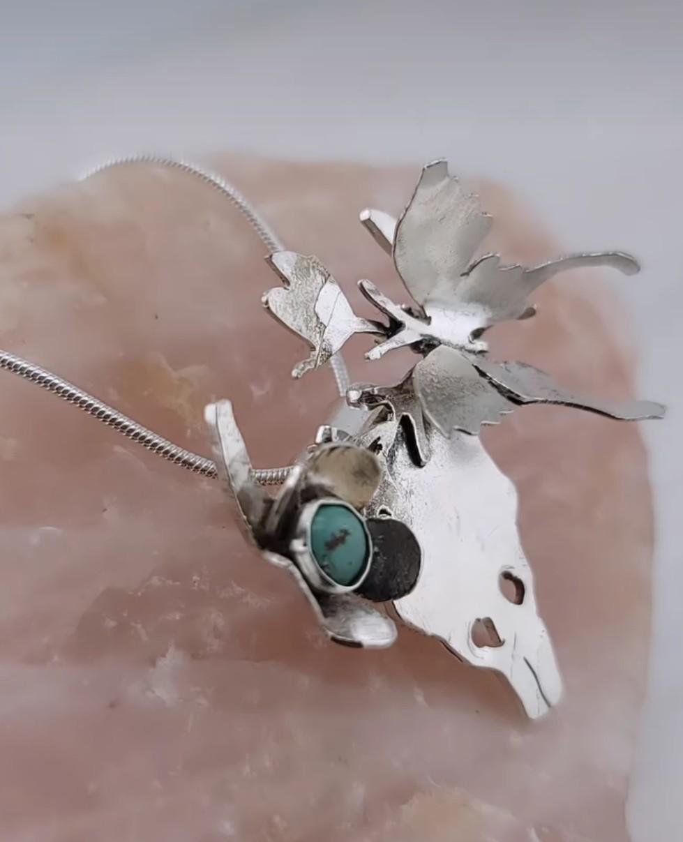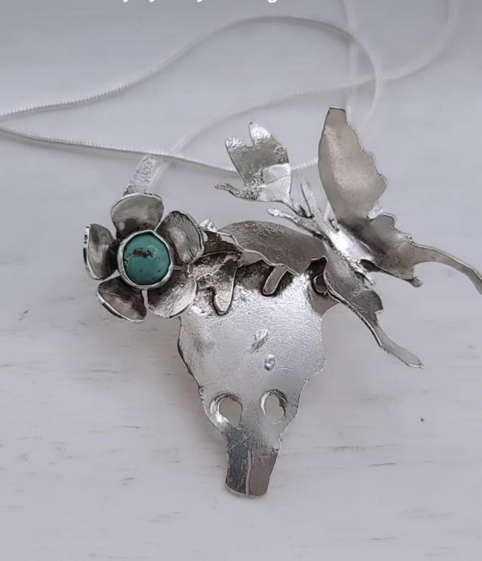 Turquoise bohemian chic vibes pendant skull western style in .925 sterling silver metal sold with an apprx 18 Inch chain