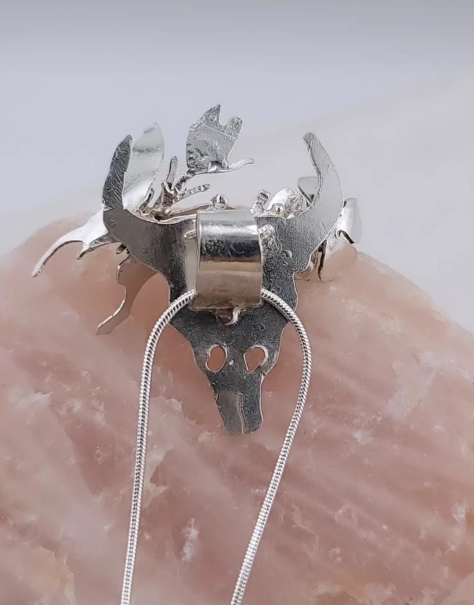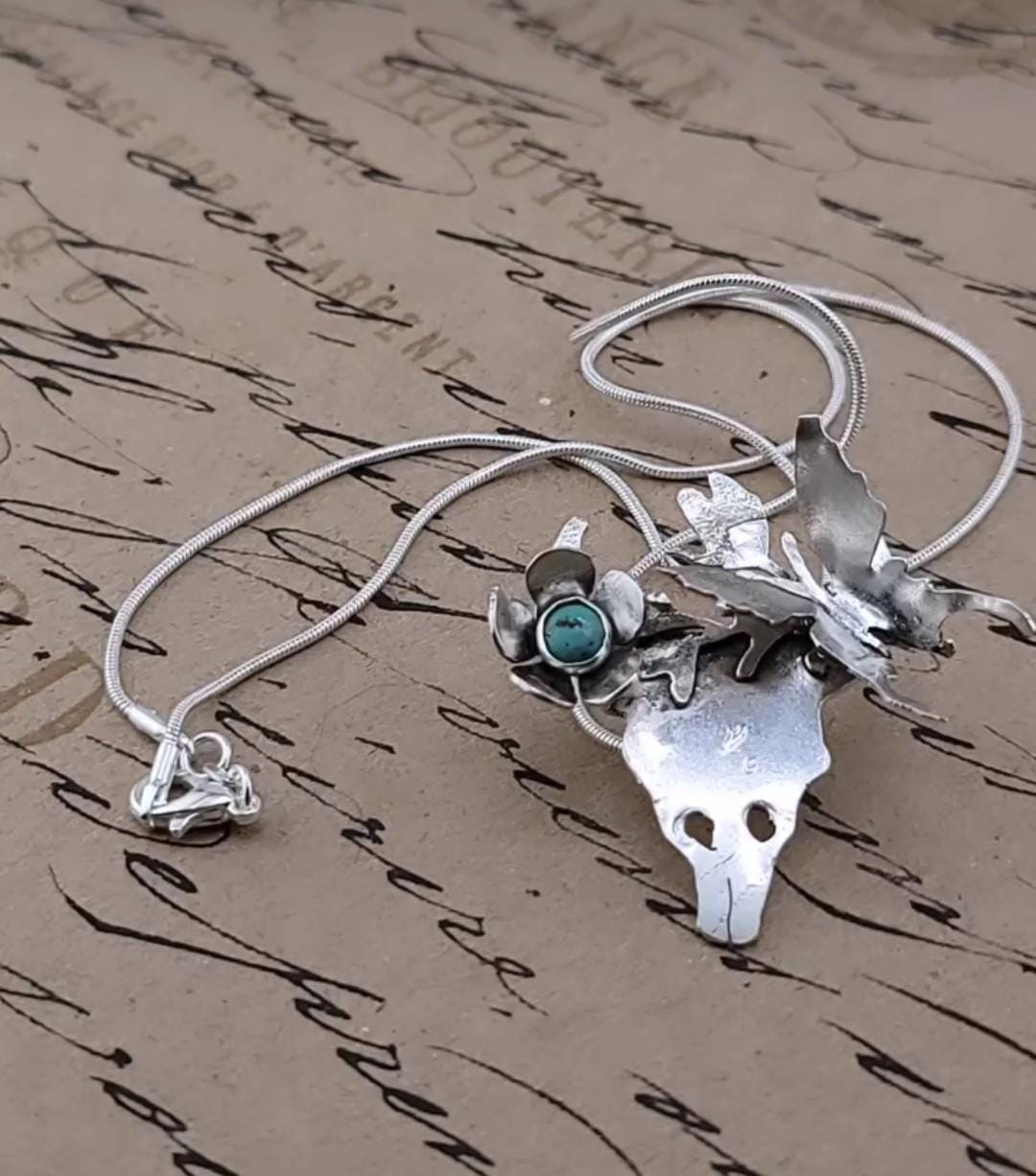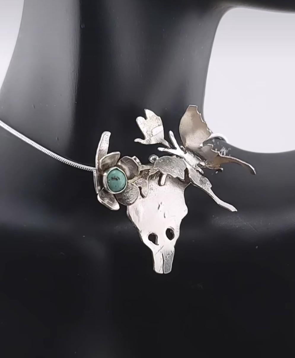 TURQUOISE skull pendant in Sterling Silver handcrafted